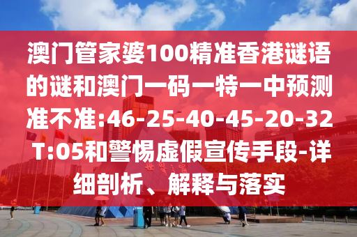 澳門管家婆100精準(zhǔn)香港謎語(yǔ)的謎和澳門一碼一特一中預(yù)測(cè)準(zhǔn)不準(zhǔn):46-25-40-45-20-32 T:05和警惕虛假宣傳手段-詳細(xì)剖析、解釋與落實(shí)