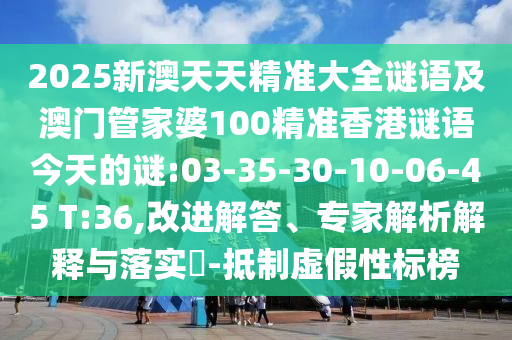 2025新澳天天精準(zhǔn)大全謎語及澳門管家婆100精準(zhǔn)香港謎語今天的謎:03-35-30-10-06-45 T:36,改進(jìn)解答、專家解析解釋與落實(shí)?-抵制虛假性標(biāo)榜
