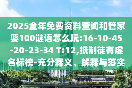 2025全年免費資料查詢和管家婆100謎語怎么玩:16-10-45-20-23-34 T:12,抵制徒有虛名標榜-充分釋義、解釋與落實