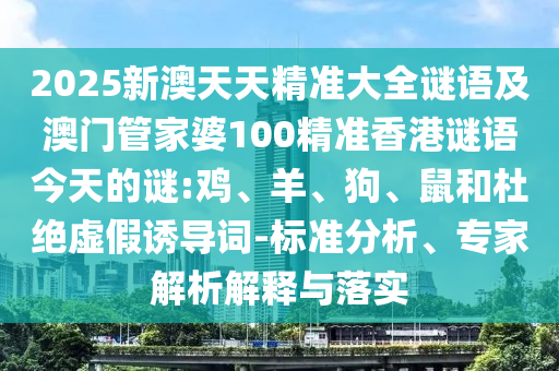 2025新澳天天精準(zhǔn)大全謎語及澳門管家婆100精準(zhǔn)香港謎語今天的謎:雞、羊、狗、鼠和杜絕虛假誘導(dǎo)詞-標(biāo)準(zhǔn)分析、專家解析解釋與落實(shí)