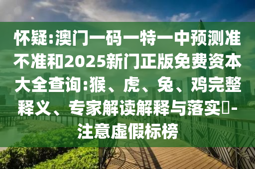 懷疑:澳門一碼一特一中預(yù)測準不準和2025新門正版免費資本大全查詢:猴、虎、兔、雞完整釋義、專家解讀解釋與落實?-注意虛假標榜