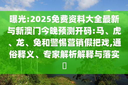 曝光:2025免費(fèi)資料大全最新與新澳門今晚預(yù)測(cè)開碼:馬、虎、龍、兔和警惕營(yíng)銷假把戲,通俗釋義、專家解析解釋與落實(shí)?