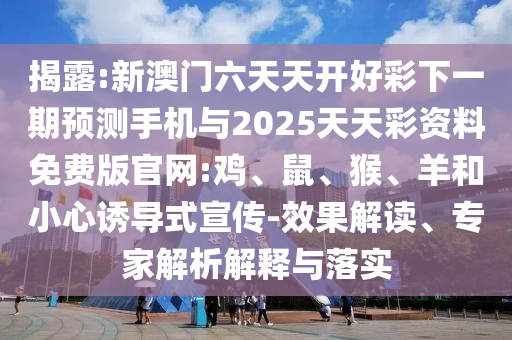 揭露:新澳門六天天開好彩下一期預測手機與2025天天彩資料免費版官網:雞、鼠、猴、羊和小心誘導式宣傳-效果解讀、專家解析解釋與落實