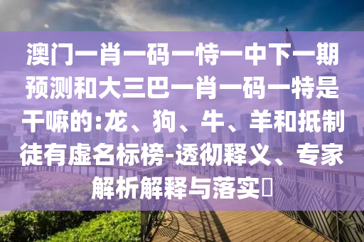 澳門一肖一碼一恃一中下一期預測和大三巴一肖一碼一特是干嘛的:龍、狗、牛、羊和抵制徒有虛名標榜-透徹釋義、專家解析解釋與落實?
