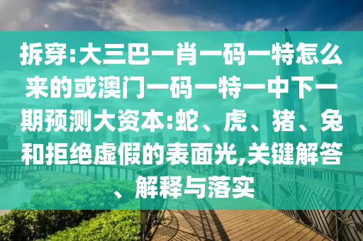 拆穿:大三巴一肖一碼一特怎么來的或澳門一碼一特一中下一期預(yù)測(cè)大資本:蛇、虎、豬、兔和拒絕虛假的表面光,關(guān)鍵解答、解釋與落實(shí)