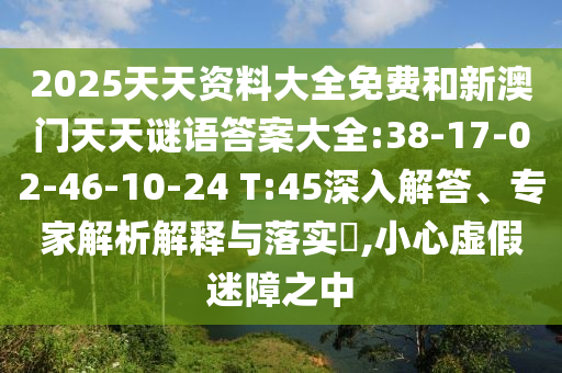 2025天天資料大全免費(fèi)和新澳門天天謎語答案大全:38-17-02-46-10-24 T:45深入解答、專家解析解釋與落實(shí)?,小心虛假迷障之中