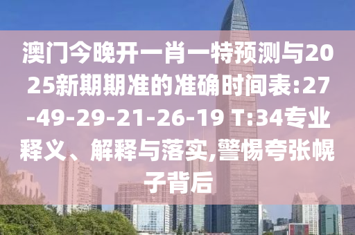 澳門今晚開一肖一特預測與2025新期期準的準確時間表:27-49-29-21-26-19 T:34專業(yè)釋義、解釋與落實,警惕夸張幌子背后