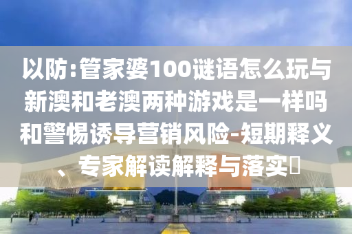 關(guān)于關(guān)鍵詞“以防:管家婆100謎語(yǔ)怎么玩與新澳和老澳兩種游戲是否一樣與警惕誘導(dǎo)營(yíng)銷(xiāo)風(fēng)險(xiǎn)”的全面釋義、專(zhuān)家解讀與落實(shí)及警惕虛假宣傳的解析