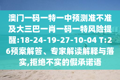 澳門一碼一特一中預(yù)測準(zhǔn)不準(zhǔn)及大三巴一肖一碼一特風(fēng)險提醒:18-24-19-27-10-04 T:26預(yù)案解答、專家解讀解釋與落實(shí),拒絕不實(shí)的假承諾語
