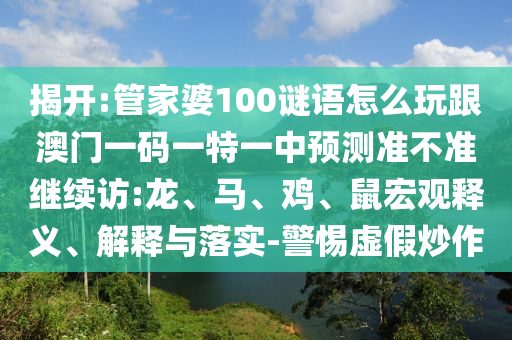揭開管家婆100謎語怎么玩與澳門一碼一特一中預(yù)測準不準的真相:宏觀釋義、解釋與落實,警惕虛假炒作——關(guān)于龍、馬、雞、鼠的探討