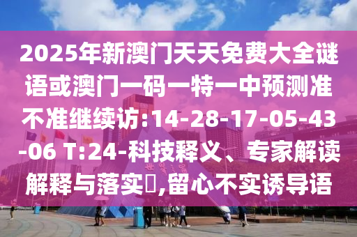 2025年新澳門天天免費(fèi)大全謎語或澳門一碼一特一中預(yù)測準(zhǔn)不準(zhǔn)繼續(xù)訪:14-28-17-05-43-06 T:24-科技釋義、專家解讀解釋與落實?,留心不實誘導(dǎo)語
