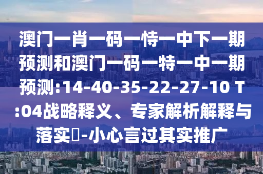 澳門一肖一碼一恃一中下一期預(yù)測和澳門一碼一特一中一期預(yù)測:14-40-35-22-27-10 T:04戰(zhàn)略釋義、專家解析解釋與落實?-小心言過其實推廣