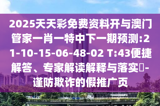 2025天天彩免費(fèi)資料開(kāi)與澳門(mén)管家一肖一特中下一期預(yù)測(cè):21-10-15-06-48-02 T:43便捷解答、專(zhuān)家解讀解釋與落實(shí)?-謹(jǐn)防欺詐的假推廣頁(yè)