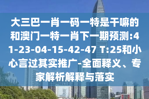 大三巴一肖一碼一特是干嘛的和澳門一特一肖下一期預(yù)測:41-23-04-15-42-47 T:25和小心言過其實(shí)推廣-全面釋義、專家解析解釋與落實(shí)