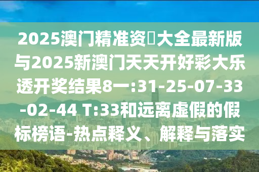 2025澳門精準(zhǔn)資枓大全最新版與2025新澳門天天開好彩大樂透開獎(jiǎng)結(jié)果8一:31-25-07-33-02-44 T:33和遠(yuǎn)離虛假的假標(biāo)榜語-熱點(diǎn)釋義、解釋與落實(shí)