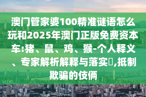 澳門管家婆100精準(zhǔn)謎語怎么玩和2025年澳門正版免費資本車:豬、鼠、雞、猴-個人釋義、專家解析解釋與落實?,抵制欺騙的伎倆